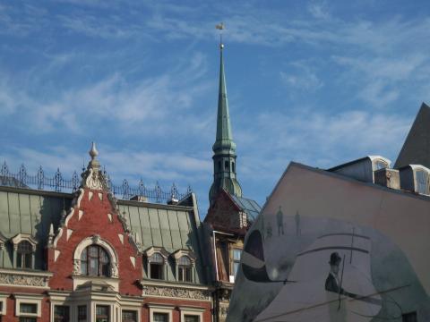 Kolja ging wie immer vor um die Lage auszuchecken und kam dann irgentwann wieder raus mit den Worten: "Brivdiena, bet nulle problems" oder so ähnlich, was bedeutete, dass das Museum heude geschlossen war. Das "null problems" (oder so ähnlich...) sollte aussagen, dass Kolja schon einen Alternativplan hatte, den er dann auch ausm Hut zauberte. Der lautete dann zunächst "Galerija Nelja" und hinterher gings ins Rathaus.