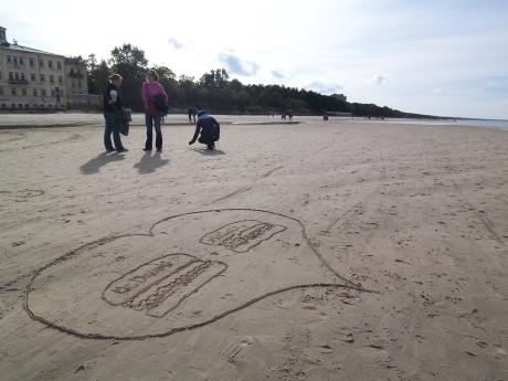 Saulkrasti - Grund unseres Ausfluges war der im November anstehende 90ste Geburtstag von Lettland, wozu ein 90 Meter langer Teppich gewebt wird an dem jeder der in Lettland lebt teilnehmen darf. Also auch wir und sogar Ich (!). Eine besondere Ehre...