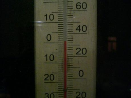 ... Heut' morgen war es noch kälter, das ist von eben gerade, unser 50 santims (75cent) Thermometer!